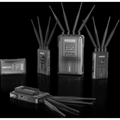 The Hollyland Syscom 421 1800' Wireless Video & Audio Transmission System is a multi-cam wireless video transmission system that communicates with up to four cameras using a single receiver with PTZ control as well as tally. Supporting up to 1080p60 video signals via SDI and HDMI, the transmitter/receiver system offers an 1800' line-of-sight transmission range with 0.07 second latency.