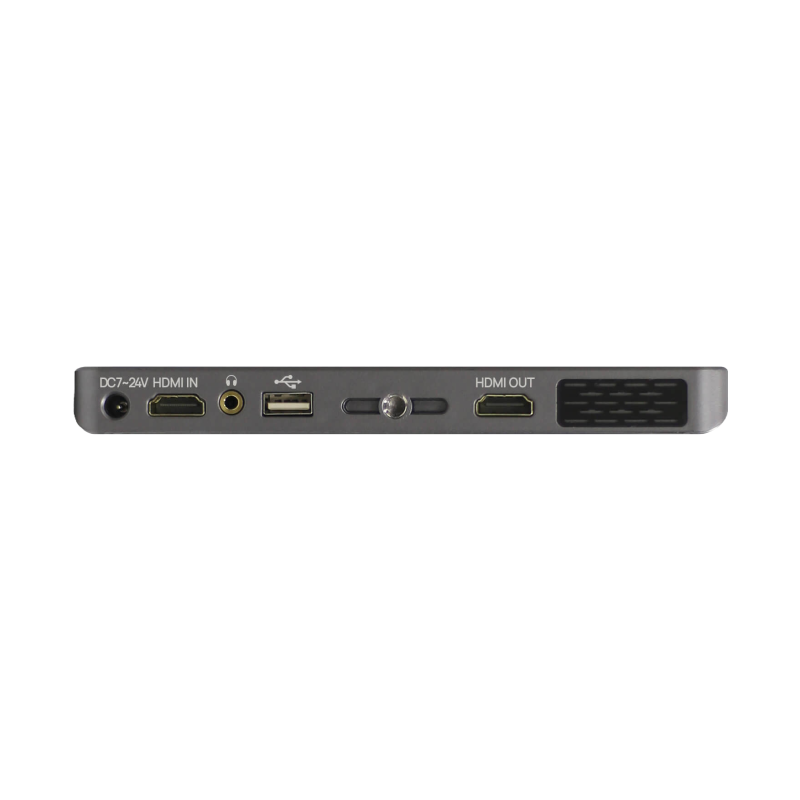 A built-in Sony NP-F-style battery plate at the back of the Portkeys LH7H allows you to power the monitor for hours thanks to an extremely low power draw of only 8W. If you power your camera rig via a V-Lock or Gold Mount external battery, there is a 5.5mm barrel connector 7-24V power input at the bottom of the monitor, allowing you to power it infinitely. Lastly, the three-in-one USB-A port will enable you to load custom 3D LUTs, upgrade the monitor’s firmware, and act as a power input/output port (max. 5V 2A).
