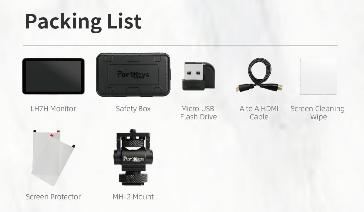 The Portkeys LH7H is our entry-level 7-inch monitor with a daylight-viewable touchscreen, a professional set of monitoring tools, four user-assignable function buttons, a robust and lightweight housing made of Polycarbonate and ABS that only weighs 245g/8.6oz (without battery), and multiple 1/4 “-20 mounting points to attach it on your camera or camera rig easily.