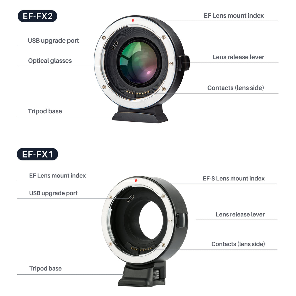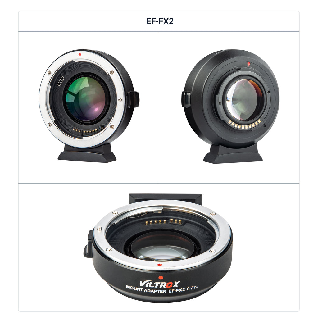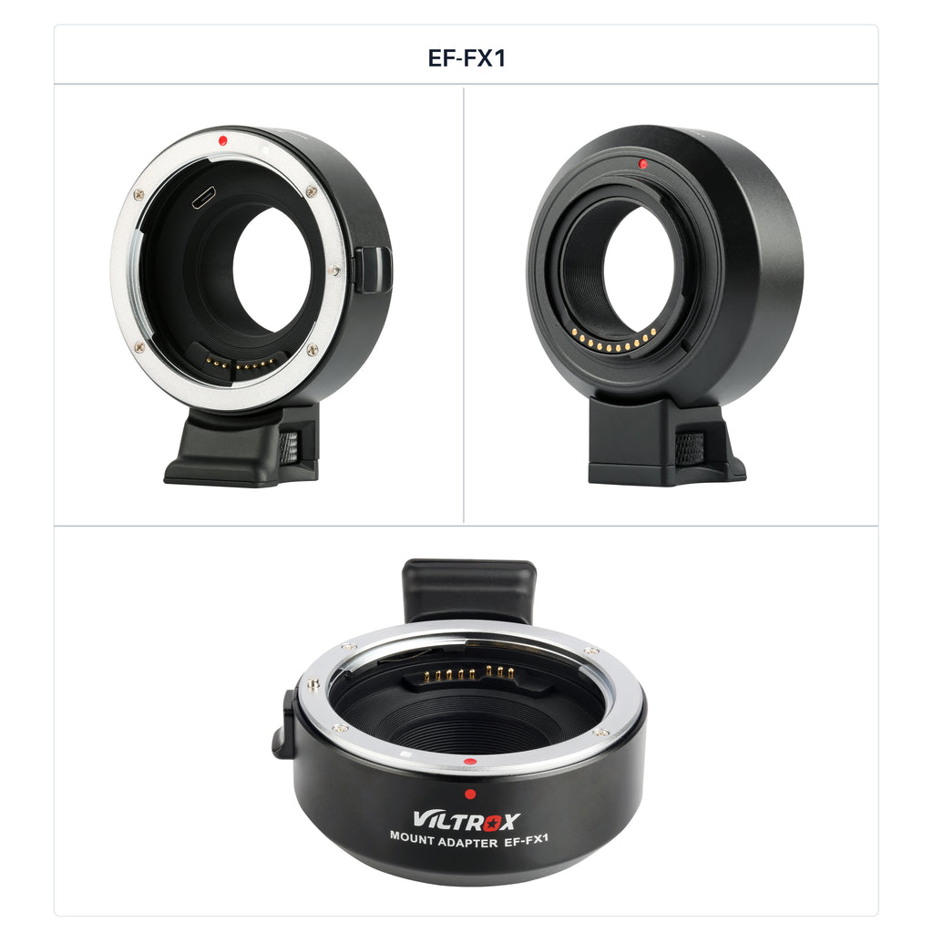 Bộ chuyển đổi ngàm dòng Viltrox EF-FX được thiết kế để ống kính dòng Canon EF/EF-S được gắn hoàn hảo trên máy ảnh không gương lật ngàm Fuji X. Nó được làm bằng kim loại với xử lý mạ bề mặt, bền và chắc chắn. Được tích hợp các điểm tiếp xúc điện tử, nó hỗ trợ lấy nét tự động, điều chỉnh khẩu độ và truyền tín hiệu EXIF.