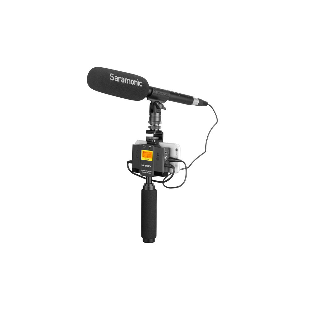 Compact two-channel wireless receiver and audio mixer for IOS, Android smartphone and cameras