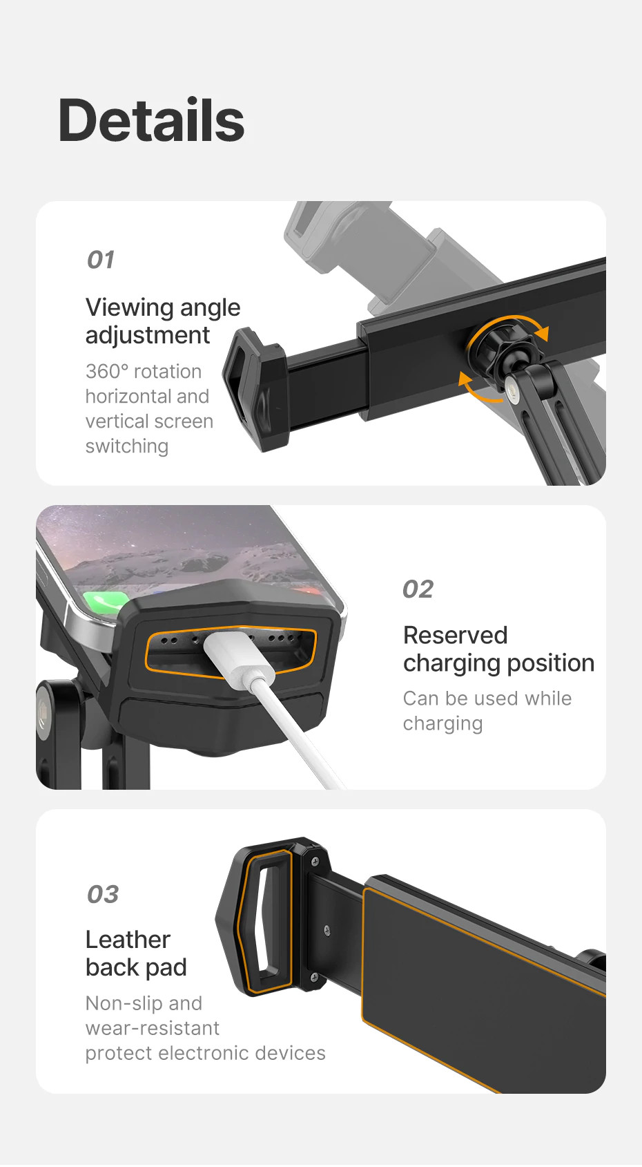 ◾ Chân đế kẹp chặt mặt bàn và giữ cho điện thoại hoặc máy tính bảng của bạn an toàn và không bị rơi ra ngoài một cách ngẫu nhiên.