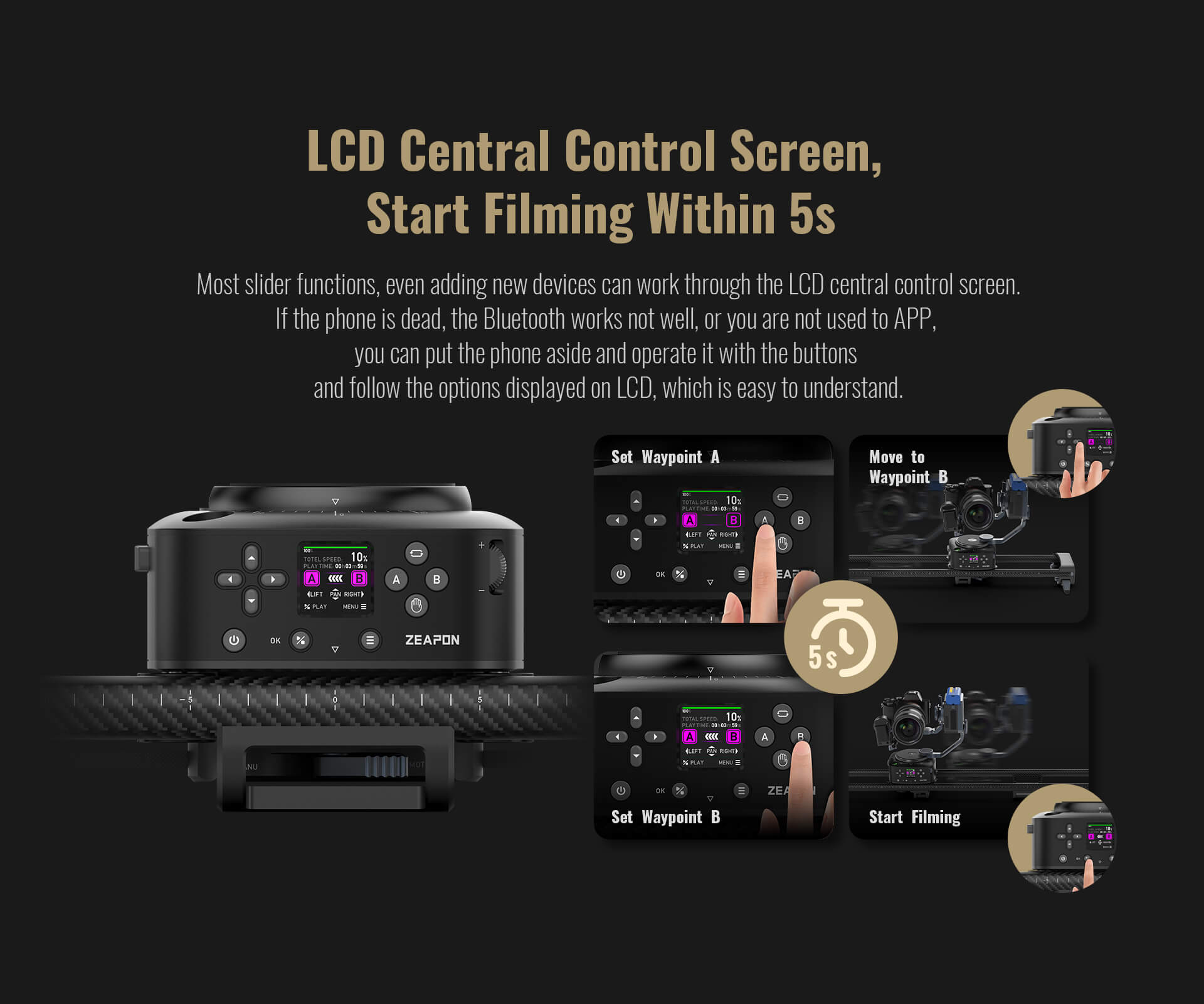 - Chiều dài thanh trượt 1000mm, Khoảng cách di chuyển ống kính 800mm