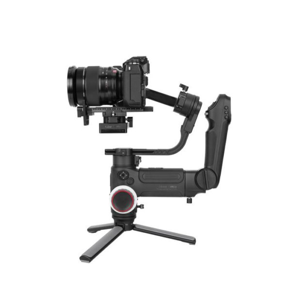 – Thay vào đó, chân đế có thể được gập lại thành một tay cầm hoạt động bình thường như mẫu tay cầm đôi. Crane 3 Lab cũng sở hữu tay cầm ngang kết hợp với phần đế giữ cân bằng cho gimbal, thiết kế như một bán súng.
